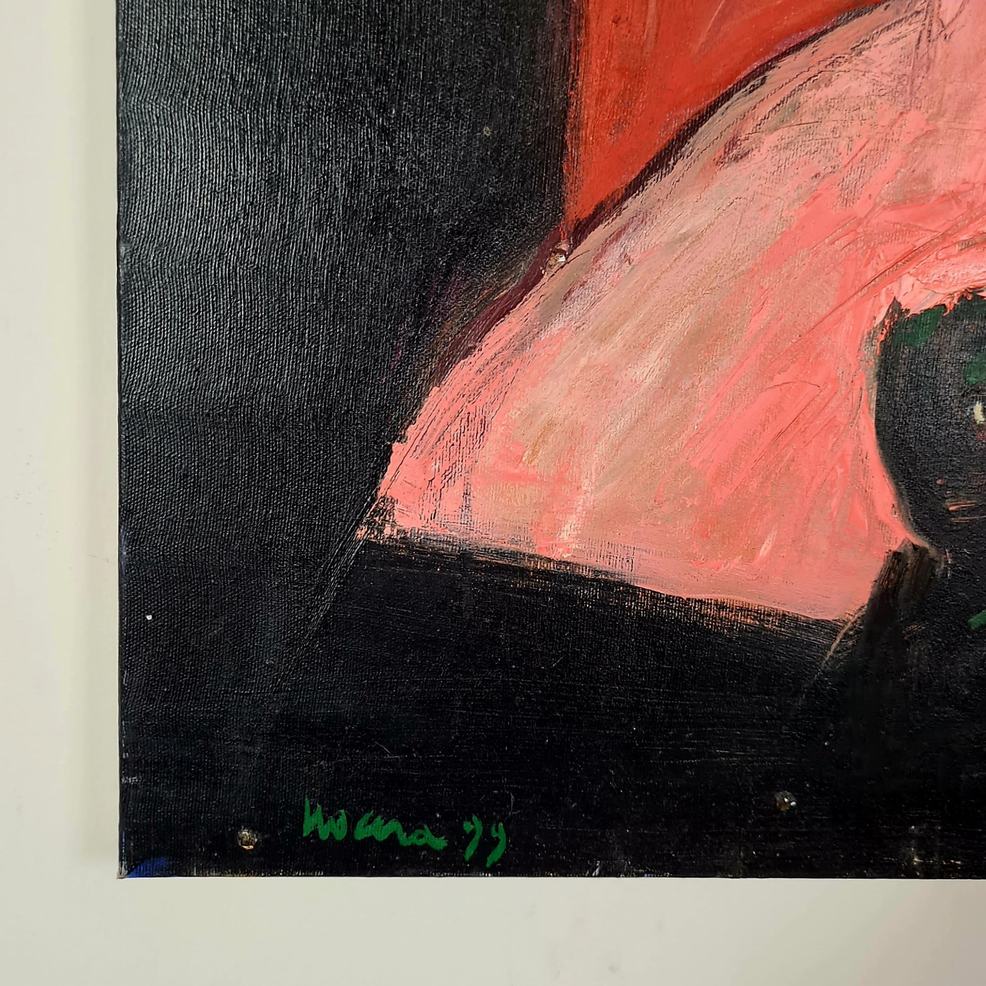 Opera originale del maestro Franco Nocera, noto per il suo stile espressionista e l’uso audace del colore. Questo affascinante ritratto mostra una figura femminile immersa in una dimensione onirica, caratterizzata da intensi contrasti cromatici e pennellate materiche.