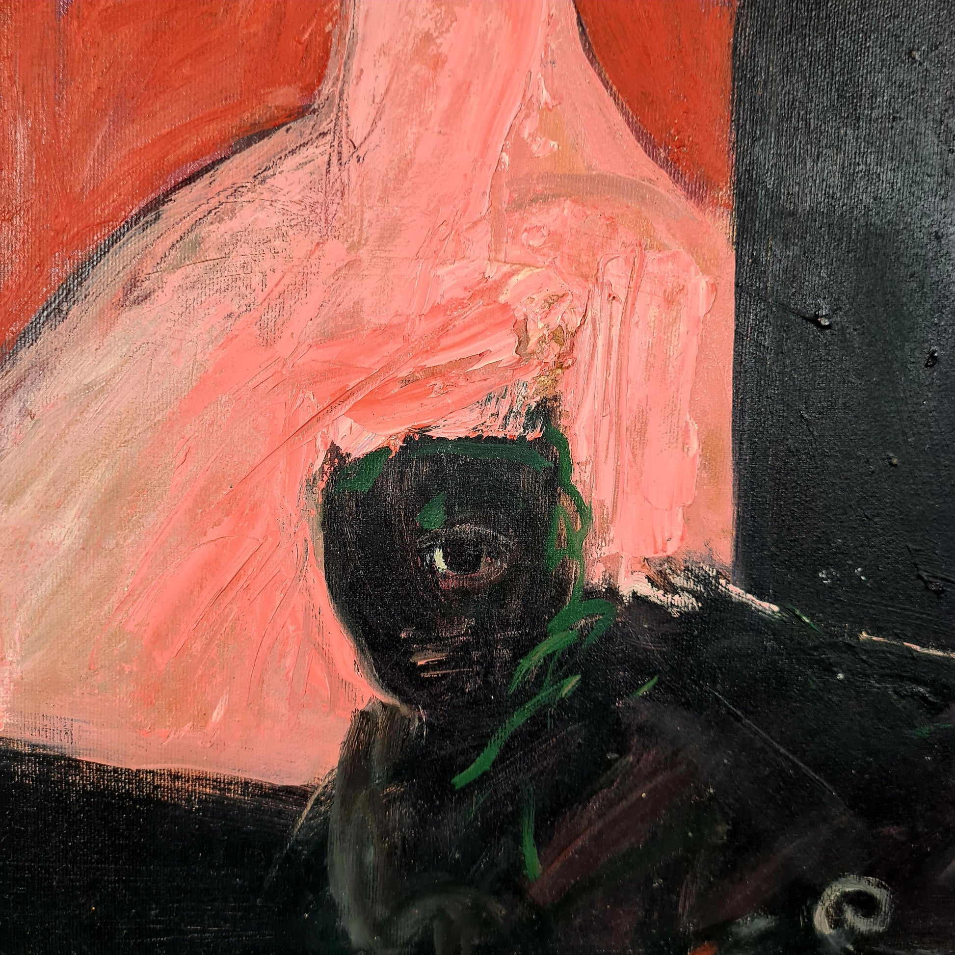 L’artista, attivo nel panorama contemporaneo, è apprezzato per la sua capacità di trasmettere emozioni profonde attraverso volti enigmatici e composizioni vibranti. Il gioco di colori tra blu, verde e giallo dona all’opera una forte carica emotiva, mentre i dettagli in rosso e arancio creano un dinamismo visivo unico.