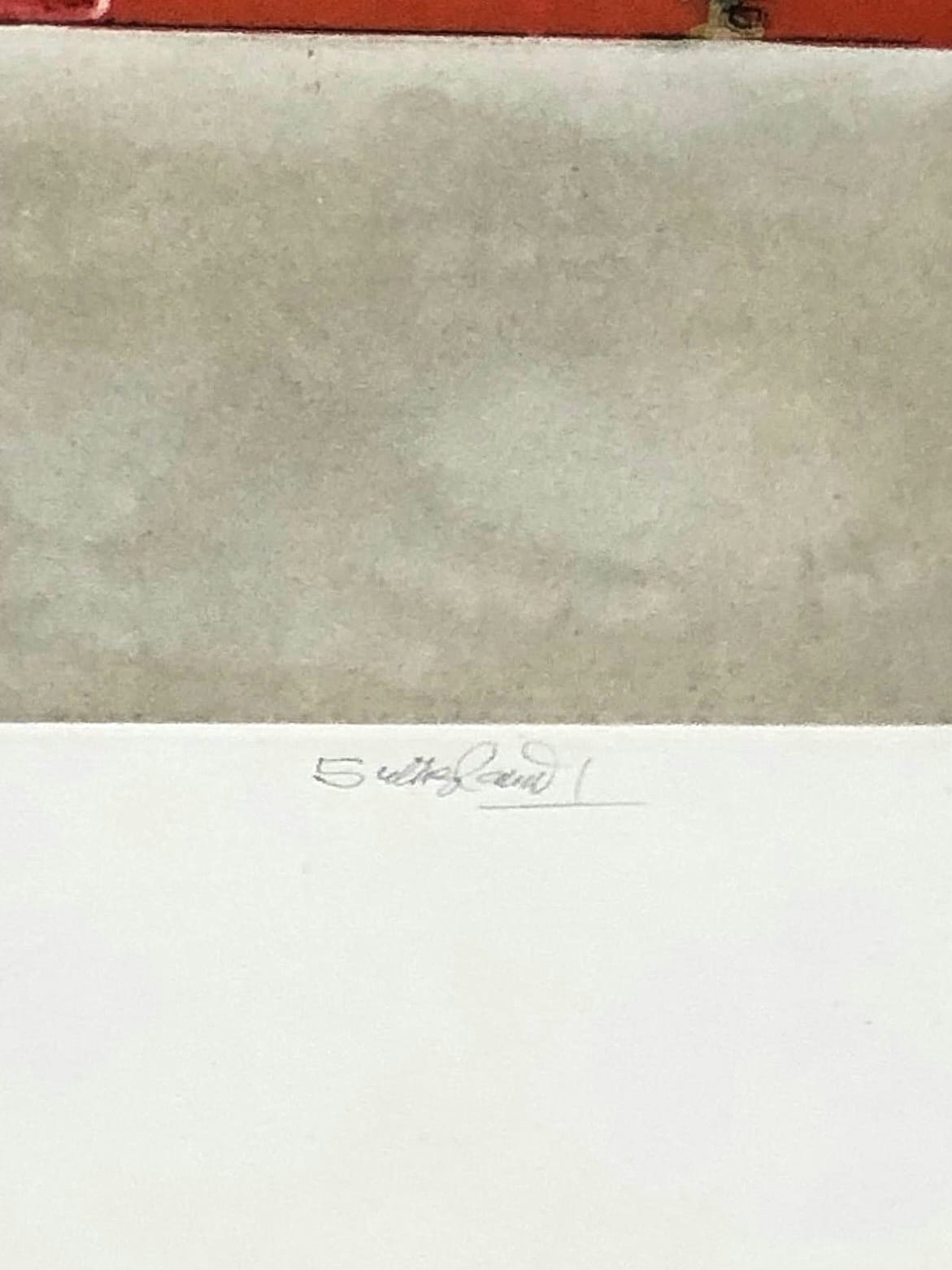 Ciò che rende questa impressione particolarmente unica è la presenza di una dedica manoscritta al posto del consueto numero di tiratura. Non appartenendo a una serie numerata, questo foglio rappresenta un esempio eccezionale e intimamente personale all’interno dell’opera grafica di Sutherland.