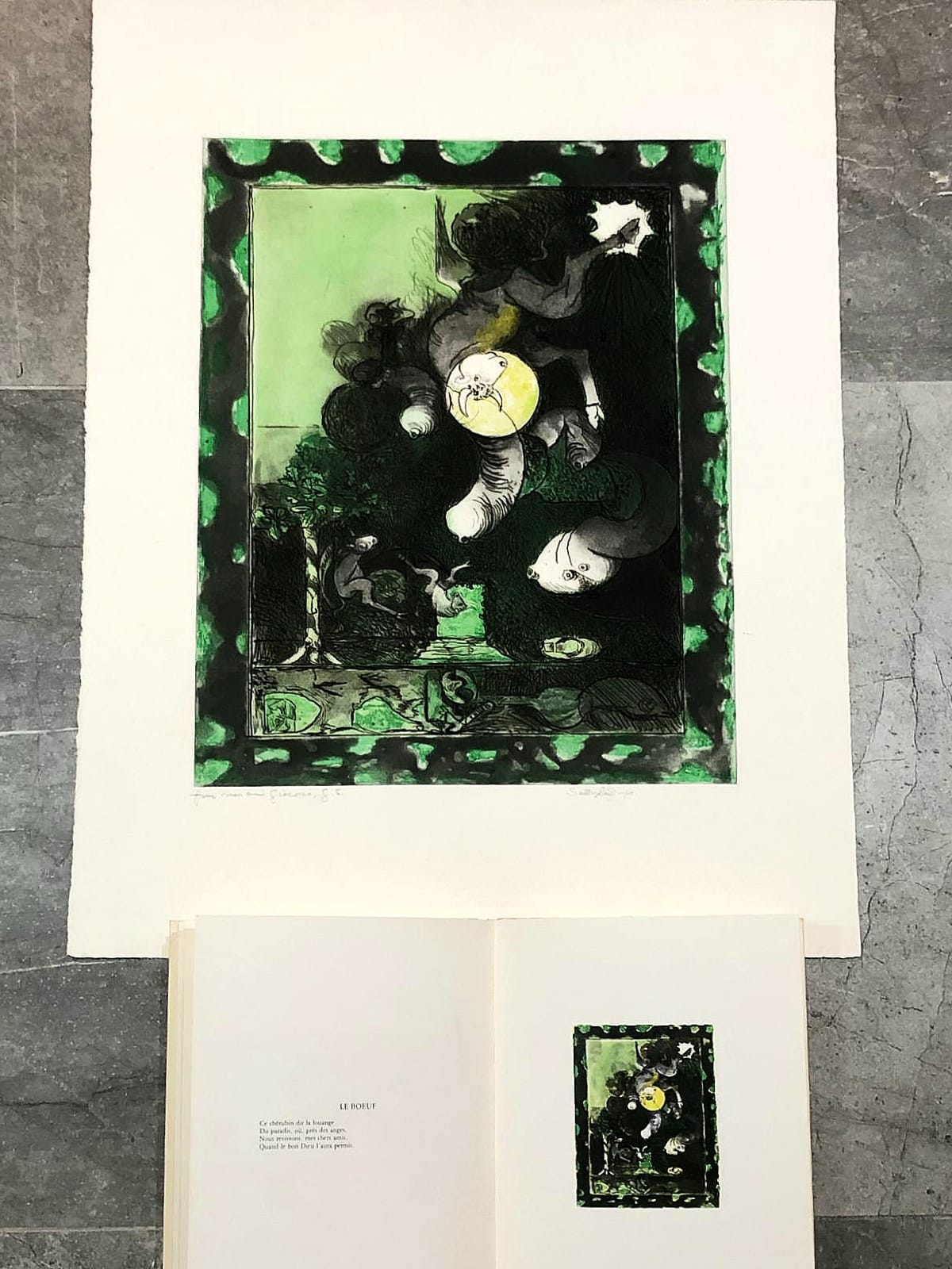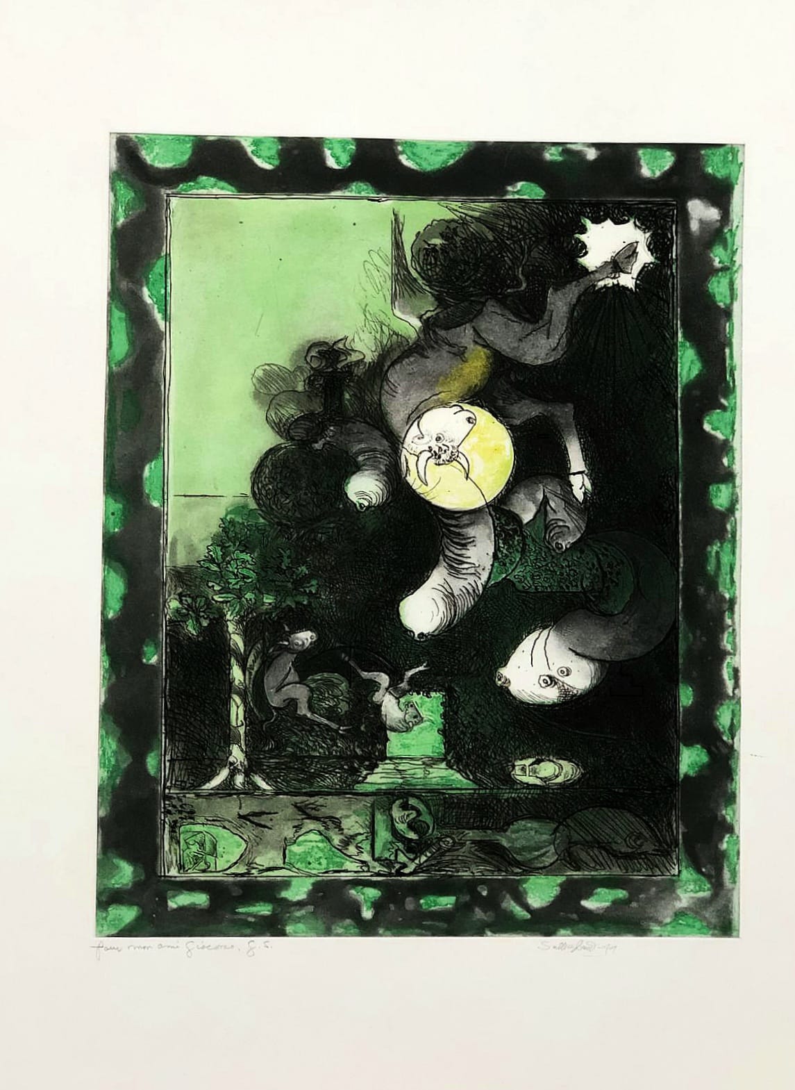 A rendere questa impressione particolarmente rara è la dedica manoscritta, che sostituisce il consueto numero di tiratura. Non facendo parte di una serie numerata, questa stampa rappresenta un pezzo unico e intimo all’interno della produzione grafica dell’artista. Le copie dedicate sono molto ricercate, poiché testimoniano un legame diretto tra Sutherland e il destinatario.